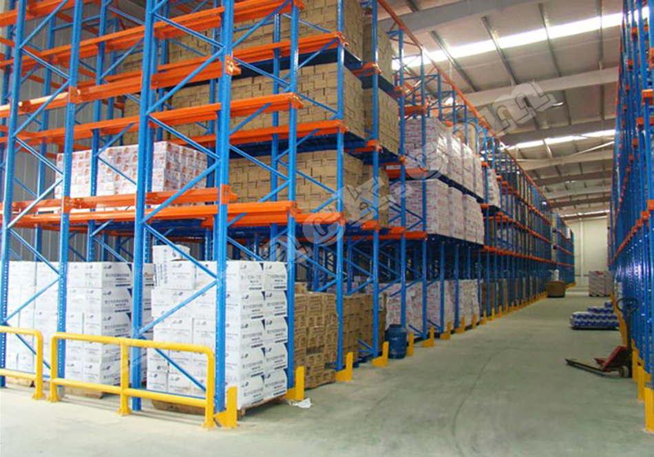 通廊式货架又叫驶入式货架、贯通式货架,是一种不以通道分割的、连续性的整栋货架,在支撑导轨(牛腿梁)上,托盘按深度方向存放,一个紧接一个,这使得高密度存放成为可能。驶入式货架适用于品种少、数量大的货物存放,常用于存放大批同类型货物,对空间利用较高,适合于食品行业、化工行业、制衣行业、冷库等存储空间成本较高的场合,其单位场地的储存成本相对较低。